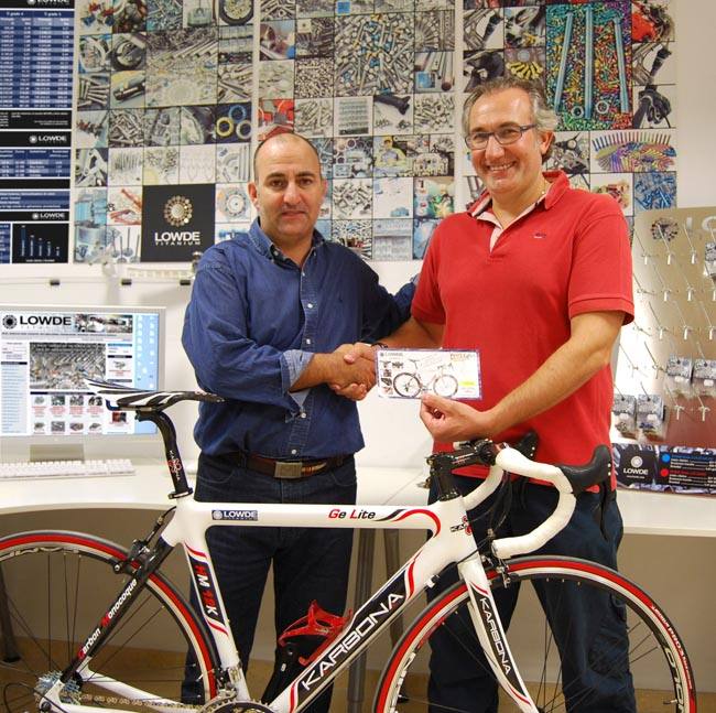 El pasado 13 de octubre los responsables de LOWDE-TITANIUM y PROLIGHT COMPONENTS entregaron la bicicleta Karbona Ge Lite 09anodizados en color oro. equipada -como no- con 24 tornillos de titanio