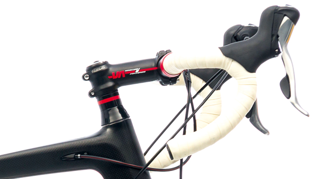 Destaca la potencia regulable en ángulo de Felt que ya encontramos en sus hermanas mayores y que permite adaptar el carácter de la bici a nuestras pretensiones. Si la colocamos sin separadores y en -17º somos capaces de copiar la posición de competición a la que estamos acostumbrados. La mejoraríamos con unas ruedas más ligeras y, sobre todo, con un grupo de 11v ya que el Tiagra de la anterior generación resulta muy limitado, tanto por tacto de cambio como por ergonomía de la manetas, si nuestra intención va más allá de simple bici de iniciación.