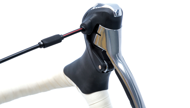El grupo Tiagra resulta un poco desfasado, tanto por sus cables por fuera como por sus voluminosas manetas lejos de la ergonomía de las actuales. Aun así presenta un funcionamiento preciso.