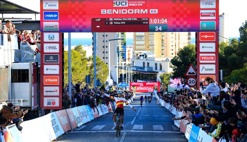 Desde su estreno en 2023, la Copa del Mundo de Ciclocross UCI – Benidorm Costa Blanca se ha convertido en uno de los principales eventos deportivos del invierno en España en general y la Comunidad Valenciana en particular. Su calidad deportiva, notable por su participación y por la espectacularidad de las carreras, quedó de nuevo de manifiesto este fin de semana en los Campeonatos del Mundo de Ciclocross 2026 celebrados en Hulst (Países Bajos). Los vencedores de sus pruebas Elite fueron los mismos que alzaron los brazos en la cita alicantina: Lucinda Brand, en la femenina, y Mathieu Van der Poel, en la masculina. De hecho, los corredores que consiguieron los maillots arcoíris de las otras cuatro categorías (juvenil y sub23, en versión masculina y femenina) también participaron, con distinta suerte, en las carreras de Benidorm.