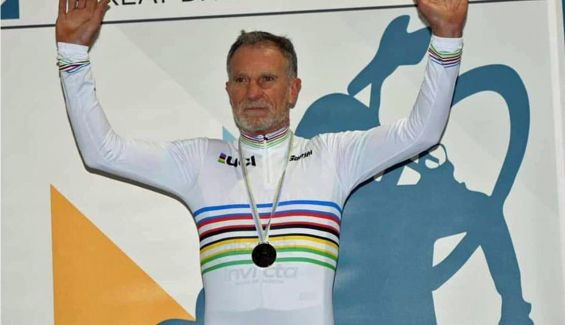 Regresó a la bici ya con 40 años. Eran los días del boom del mountain bike.”Mi hijo corría en Juniors y yo en veteranos. Después de esa etapa dejé de nuevo la bici y me centré en la moto de enduro. Cuando volví de nuevo a pedalear ya tenía 60 años. Me lo tomé más en serio, contraté un entrenador y también a cuidarme más, a vigilar la dieta”.