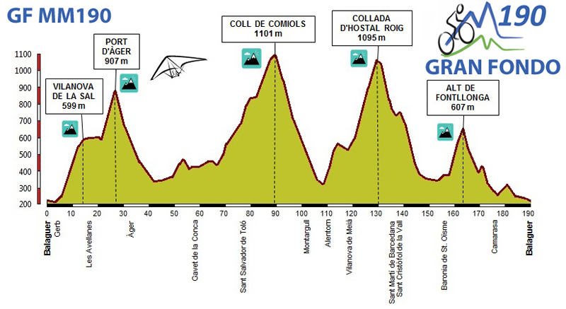 Recorrido: Balaguer-Gerb-Vilanova de la Sal-Avellanes-Port d’Àger-Àger-Congost de Terradets-El Pont de Barcedana- Masos de Llimiana-Gavet de la Conca-Sant Salvador de Toló-Coll de Comiols-Montargull-Alentorn-Vilanova de Meià-Collada d’Hostal Roig-Sant Miquel de la Vall-Sant Martí de Barcedana- El Pont de Barcedana-La Baronia de Sant Oïsme-Alt de Fontllonga-Camarasa-Balaguer.