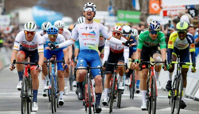 En un emocionante y agónico final Mathieu Burgaudeau (TotalEnergies) ha estrenado su palmarés profesional tras sorprender al pelotón con un ataque a falta de 9 km, con el que se ha anotado la victoria en 6ª etapa de la París-Niza.
