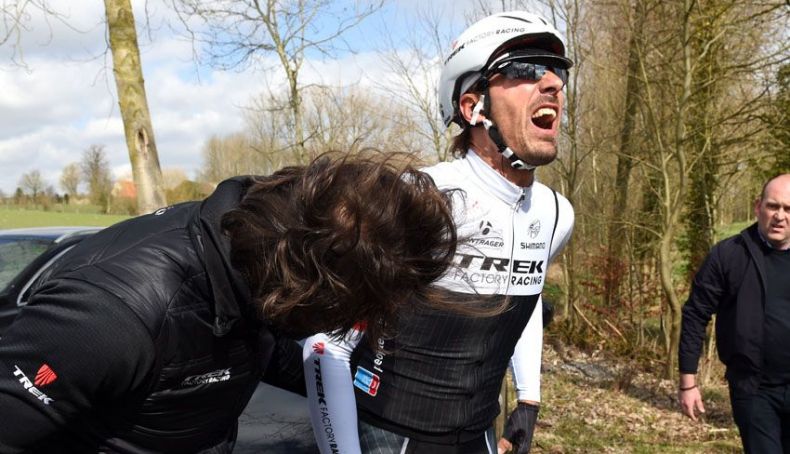 Fabian Cancellara no podrá disputar ni el Tour de Flandes ni la París-Roubaix, probablemente sus dos principales objetivos del año. El ciclista suizo del conjunto Trek se vio inmerso en una montonera en la E3 Harelbeke que le obligó a abandonar la carrera debido a los fuertes dolores que sufría en la espalda. Los exámenes médicos posteriores confirmaron los peores presagios, Espartaco se queda sin clásicas de primavera por la fractura de dos vertebras.