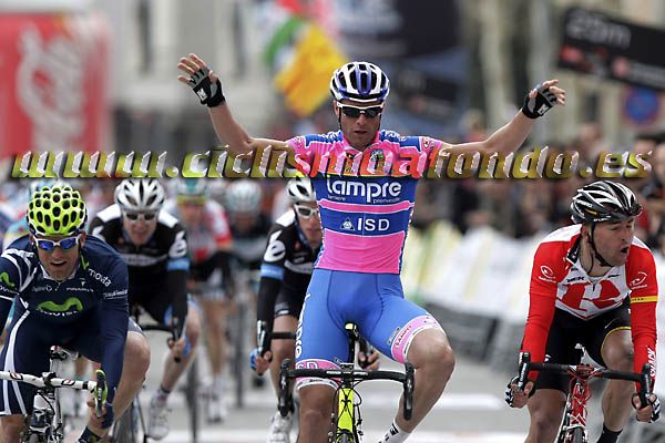 La 'photo finish' decantó la victoria del lado de Petacchi, de 37 años, de La Spezia. El italiano acabó ganando la partida que Lampre y Movistar echaron con los fugados durante toda la etapa. A ritmo de crucero, estirando al pelotón, dejaron sin sueño a David de la Cruz, el joven sabadellense que llegó al ciclismo de casualidad, a Rubén Pérez, el naranja que representó a Euskaltel-Euskadi, a José Alberto Benítez, el protagonista de Andalucía-CajaGranada, y a Marek Rutkiewicz, el polaco del CCC que se lanzó a la aventura con los tres españoles.