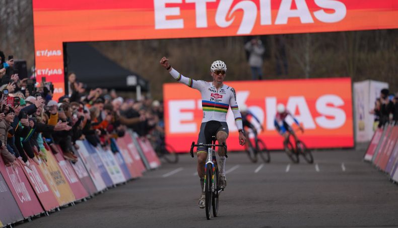 Mathieu van der Poel (Alpecin - Premier Tech) ha destrozado el diccionario. No existen palabras para describir su superioridad y leyenda sobre la modalidad del ciclocross. Ya no va de récords, de alcanzar las 50 victorias en la máxima competición a nivel mundial o de sumar una jornada más sin perder, y ya van más de dos años, esta historia trata de un corredor invencible. Ha sufrido dos pinchazos y ha ganado la carrera de nueve vueltas sobre la localidad belga de Maasmechelen con más de 10 segundos sobre Tibor del Grosso (Alpecin - Premier Tech), campeón nacional de los Países Bajos, y Niels Vandeputte (Alpecin - Premier Tech).