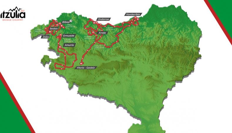Esta mañana se ha presentado el recorrido oficial de la Itzulia 2021, una presentación que acorde a los momentos que vivimos se ha realizado de manera virtual. La 60ª edición de la carrera -que tendrá lugar del 5 al 10 de abril- comenzará con una contrarreloj individual en Bilbao y finalizará en Arrate, con un total de 797,6 km en sus seis etapas.