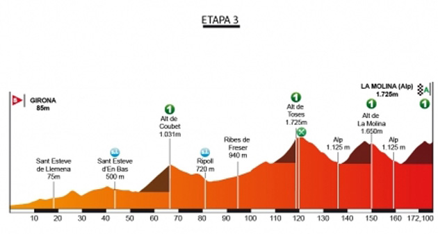 Miércoles 23 de marzo / 3ª etapa / Girona - La Molina (Alp) / 172,1 km