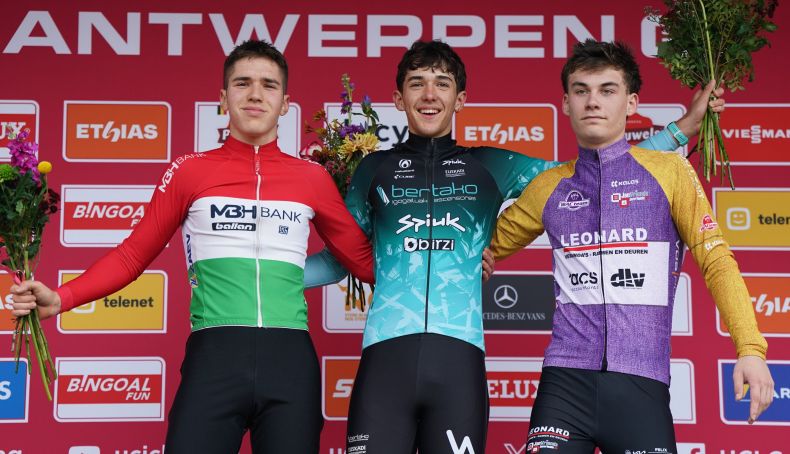 Raúl López Sainz conquistó Amberes y dejó su huella marcada sobre la arena tras completar una carreras magistral en la manga junior masculina. El joven corredor español deslumbró a conocidos y extraños con su participación en la quinta jornada de la Copa del Mundo en suelo belga. El invierno de ciclocross se tiñó con los colores de la bandera de España. Dominó con valentía y determinación desde los primeros giros hasta la línea de meta, dejando sin opciones a sus rivales durante el transcurso de la prueba. Su mayor amenaza fue Benedek Berencsi, que entró segundo a 13 segundos. Completó el pódium Luca Renders.
