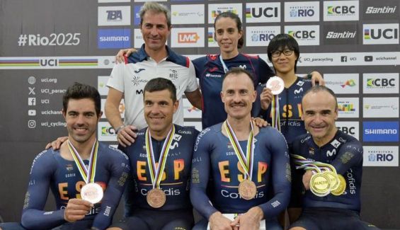 Uno de los grandes éxitos de la Selección Española en este Campeonato del Mundo fue lograr la tercera plaza en su estreno en la prueba de Velocidad por equipos mixta. El trío español, formado Isabel Yinghua Hernández, Eduardo Santas y Alfonso Cabello-Pablo Jaramillo, marcó el tercer mejor tiempo en la clasificatoria con 51”849, lo que les daba derecho a pelear en la final B por el bronce frente a Brasil. En el decisivo enfrentamiento por el podio, el equipo español mostró su mejor cara y pudo superar al país anfitrión para convertir en realidad el sueño de ser medallistas en esta especialidad mixta.