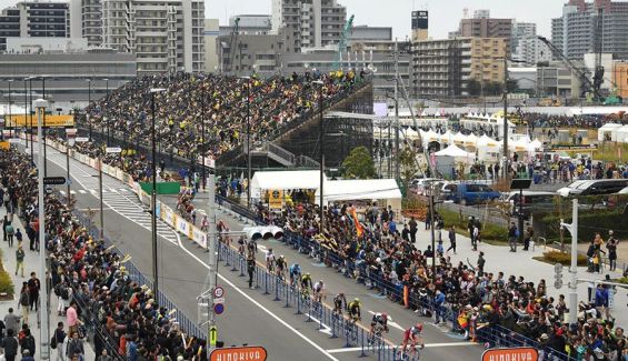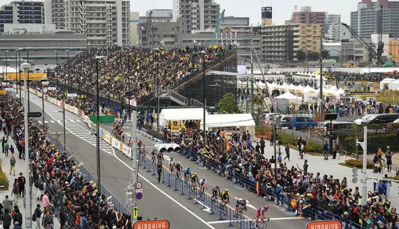 Sobre un circuito urbano de 3,1 kilómetros al que debían completar 19 giros, un selecto pelotón de 53 corredores se disputaron el triunfo en tierras niponas. Vincenzo Nibali fue uno de los corredores más ofensivos de los primeros compases, pero nunca rodó con más de quince segundos de ventaja. El transalpino volvería a involucrarse en otra fuga, esta vez grupal, tras un acelerón de su compatriota Matteo Trentin (Mitchelton-Scott).