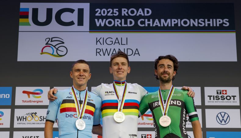 Tadej Pogacar (Eslovenia) es el rey del mundo por segundo año consecutivo. El corredor esloveno revalidó el oro mundial tras un apabullante y indescriptible ataque en la ascensión al Monte Kigali a más de 100 kilómetros para la línea de meta, dejando a todos los integrantes del pelotón perplejos. En 2024 en Zurich, se lanzó a por el triunfo a 100, y en Ruanda volvió a repetir hazaña. Los dos valientes que le siguieron la rueda, Isaac del Toro (México) y Juan Ayuso (España) se vieron relegados al top-10, incapaces de hacerle frente a lo largo del trazado. Remco Evenepoel (Bélgica), tras dos averías y dos cambios de bicicleta, se consagró como plata y Ben Healy (Irlanda), con su característica combatividad, conquistó el bronce para su país.
