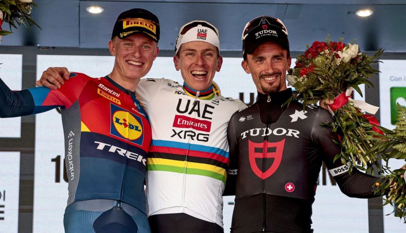 45" después de que Tadej Pogacar rematara su enésima exhibición (aunque atacar a 20 km de meta ya parece poca cosa para él) Albert Withen Philipsen (Lidl-Trek) se imponía en la volata por la segunda plaza, con Julian Alaphilippe (Tudor) tercero. Paul Lapeira y Sergio Higuita completaron el top-5, con Isaac del Toro entrando octavo y Ion Izagirre décimo.
