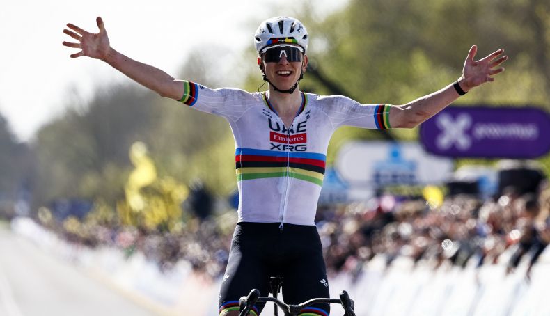 Tadej Pogacar (UAE Emirates - XRG) destroza los registros conocidos hasta la fecha en el ciclismo mundial. Persigue a la historia. Después de demostrar su perseverancia y adaptabilidad a cualquier tipo de terreno con su monumental victoria en la Milán - San Remo, ha vuelto a subirse a lo más alto del pódium con una nueva actuación que se quedará grabada en las páginas más gloriosas de este deporte. El corredor esloveno se enfrentó en un duelo de titanes ante Mathieu van der Poel (Alpecin - Premier Tech), que se agarró al manillar y resistió todos los envites del campeón del mundo, hasta el último paso por el Oude Kwaremont a 18 kilómetros de la línea de meta, donde lo soltó y consiguió encaminarse hacia un nuevo triunfo en su carrera. Remco Evenepoel (Red Bull - Bora), en su estreno en la clásica belga, logró consolidarse en el pódium y concluir con una magnifico y merecido tercer puesto.