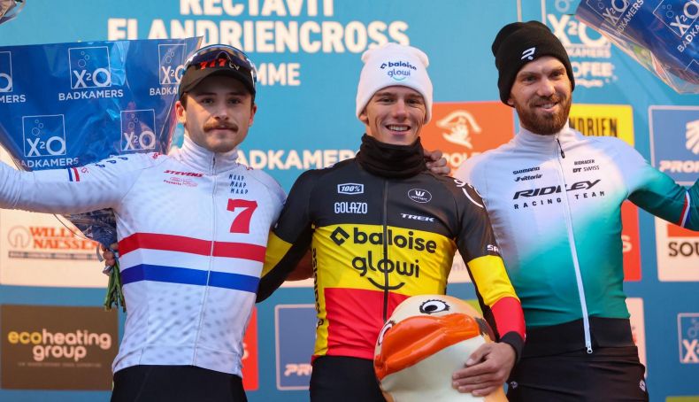 Thibau Nys (Baloise - Glowi Lions) ha vuelto a cruzar la línea de meta en primera posición. El corredor belga está de dulce, y así lo ha demostrado una jornada más en el Flandriencross de Hamme, tercera manga del X20 Badkamers Trofee. Sin embargo, su triunfo no se completó con facilidad. Tras un duelo mano a mano contra Cameron Mason (Seven Racing) y resistir con enterza todos sus ataques, se lanzó a por la victoria lanzándose por el interior de la última curva e imponiéndose en un disputado sprint final. Joris Nieuwenhuis (Ridley Racing) completó el pódium y mantuvo su condición de líder en la clasificación general.