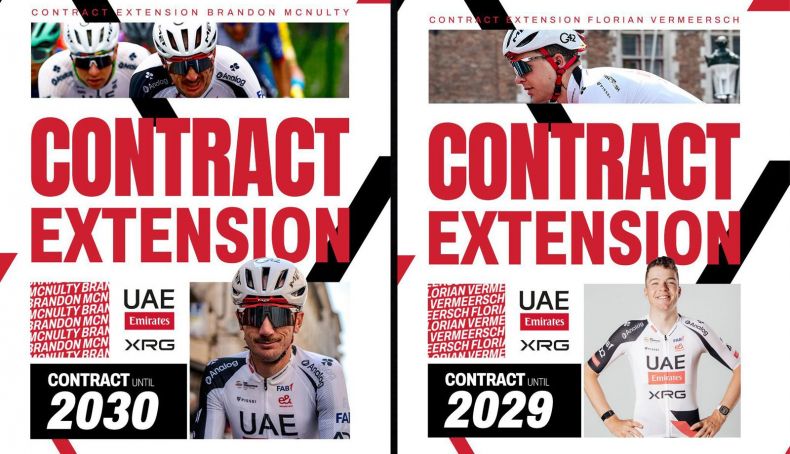 El UAE Team Emirates - XRG se ha asegurado la continuidad a largo plazo de dos de sus pilares, Brandon McNulty y Florian Vermeersch, que han ampliado sus contratos hasta 2030 y 2029 respectivamente, según ha anunciado el equipo emiratí.