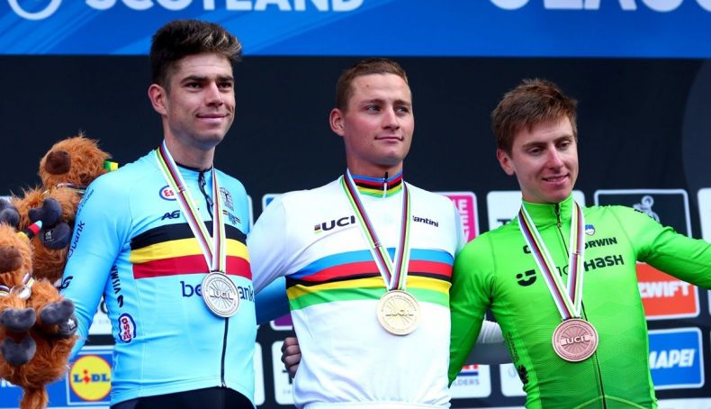 Mathieu van der Poel, nuevo campeón del mundo en ruta, se mostró feliz en la meta de Glasgow por una victoria que completa su trayectoria como ciclista total, y ya sueña con vestir el maillot arcoíris durante todo un año. "Esta victoria significa todo para mí. Era uno de los objetivos más grandes que me quedaban, y ganarlo hoy es increíble. En mi opinión, este triunfo completa mi carrera, es la mayor victoria en carretera. Todavía no puedo imaginarme usando el arcoíris durante un año", señaló Van der Poel antes de subir al podio.