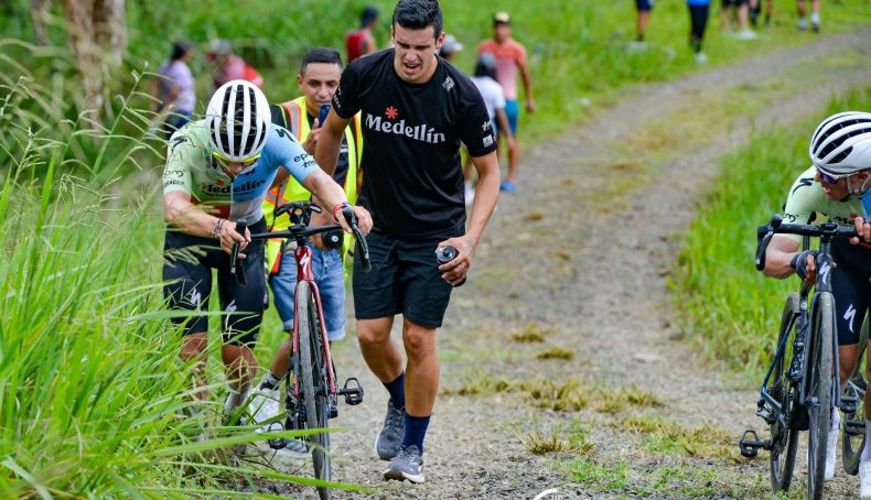 Un auténtico calvario –más propio de una prueba de gravel o de ciclocross– para todos los participantes, sin excepción. Ninguno de ellos fue capaz de superarlo sin poner pie a tierra, incluidos Miguel Ángel 'Superman' López y su compañero en el Team Medellín-EPM Wilmar Paredes, que entraron de la mano en meta como ganadores, pero que tuvieron que sufrir como el resto, bajándose de la bici y empujándola hasta coronar la terrible subida.