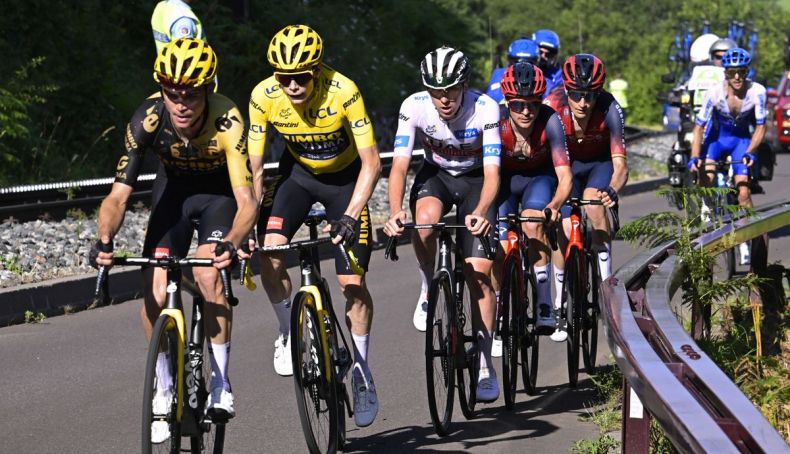 El Tour de Francia cierra un primer bloque de nueve etapas que ha resultado vibrante y que ha dejado perfectamente definida la batalla por los puestos nobles de la carrera: por un lado, el espectacular duelo de colosos entre los dos grandes favoritos -Jonas Vingegaard y Tadej Pogacar, separarados por solo 17" y repartiéndose golpes en la alta montaña-; por otro, la lucha por la tercera plaza del podio en la que encontramos a media docena de legítimos aspirantes: el australiano Jai Hindley, que conserva el tercer lugar con una ventaja de 1´42" pero que ayer mostró cierta debilidad en el Puy de Dóme, un Carlos Rodríguez sólido y que se está consagrando en su debut en Tour, los hermanos Adam y Simon Yates -5º y 6º- Tom Pidcock -el segundo INEOS en la lucha por el cajón- y hasta el francés David Gaudu, aunque el del Groupama-FDJ no está luciendo al nivel del pasado año, cuando acabó 4º.
