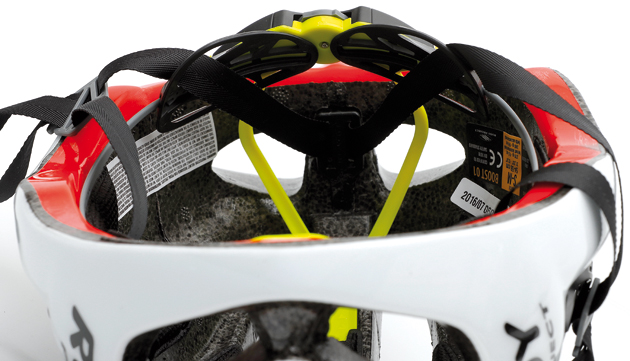 No hemos tenido problemas de roces con las patillas de las gafas -ni con su colocación en la parte superior, aunque quedan un poco abiertas-, mientras que es sencillo encontrar una posición cómoda de la retención occipital gracias a sus cinco posiciones de altura y a la ruedecilla de ajuste micrométrico. Sin embargo, sería mejor que estuviese disponible en tres tallas en vez de dos: S-M y L, ya que permitiría reducir su tamaño y mejoraría la estética en personas con cabezas pequeñas. Además de estar disponible en colores flúor, que mejoran la visibilidad del ciclista, añade un elemento de seguridad apreciable: una pegatina de identificación con un registro gratuito de un año en el sistema de emergencias ICEdot, lo que nos permitirá guardar nuestros datos médicos en la aplicación y que estos se puedan consultar en caso de accidente enviando un mensaje de texto con el código de la pegatina.