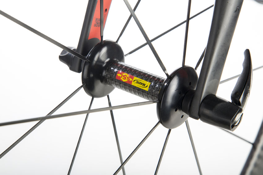 A diferencia del modelo para tubulares, la pista de frenada no es de carbono, sino de aluminio con tratamiento Exalith 2, que junto a sus zapatas especiales proporcionan la mejor frenada -a la llanta- disponible tanto en seco como en mojado, preguntándonos durante la prueba si realmente son necesarios los frenos de disco. Otro de los hándicaps de las ruedas de perfil alto es su sensibilidad al viento lateral, empeorando si es racheado la estabilidad de la bicicleta. Con ayuda del túnel de viento Mavic diseñó un perfil al que no le afectase tanto este problema, y sinceramente creemos que lo han conseguido, ya que a lo largo del test de varios meses al que las hemos sometido han demostrado ser claramente superiores a otros modelos, permitiendo controlar la bicicleta sin sobresaltos en días ventosos. Pero -no se puede tener todo- su peso influye negativamente en aceleraciones y hay que saber llevarlas en curvas cerradas o de radio medio. No son las más recomendadas en rutas muy reviradas o con lentas y largas subidas, pero una vez lanzadas son claramente superiores. Hemos comprobado como en bajadas y llanos donde no se pedalea adelantábamos con una sonrisa en la boca a otros ciclistas con ruedas "convencionales", por lo que gracias a ellas arañaremos tiempo al cronómetro o ahorraremos vatios.