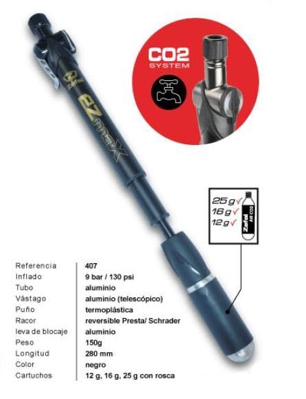 mejor control de aire inyectado, y el cartucho o bombona de CO2 se guarda