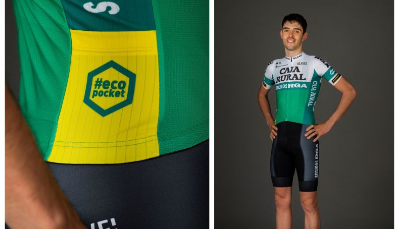 El diseño incorpora una importante novedad, ya que Caja Rural-Seguros RGA y ULEVEL apuestan por la sostenibilidad añadiendo un bolsillo amarillo al lateral del maillot, donde los ciclistas podrán depositar los residuos de barritas o geles propios tanto de la competición como de los entrenamientos. Este bolsillo, denominado #EcoPocket por ULEVEL, es uno de los varios gestos que el equipo mostrará en 2021 en favor del medio ambiente y del ciclismo como deporte sostenible.