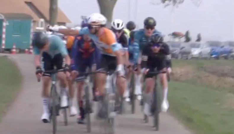 No es la primera vez que vemos una agresión de este tipo en el pelotón. En esta ocasión, el incidente sucedió el pasado sábado en la Ster van Zwolle, prueba neerlandesa de categoría 2.2.